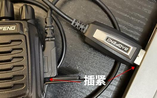 对讲器开机,写频线插好(一端插对讲器,一端插电脑USB接口)