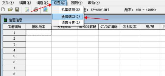 3.打开写频软件,设置选项下通信端口选择设备管理