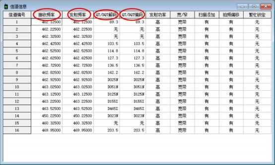 这个就是我们对讲机现有的频率和哑音